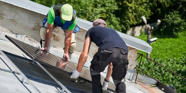 Installation de panneaux solaires photovoltaïques ou thermiques directement sur votre toiture, garantissant une fixation étanche et une production d’énergie optimale.